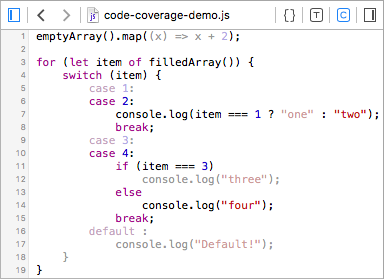 Web Inspector 还支持 代码覆盖率和类型分析。
