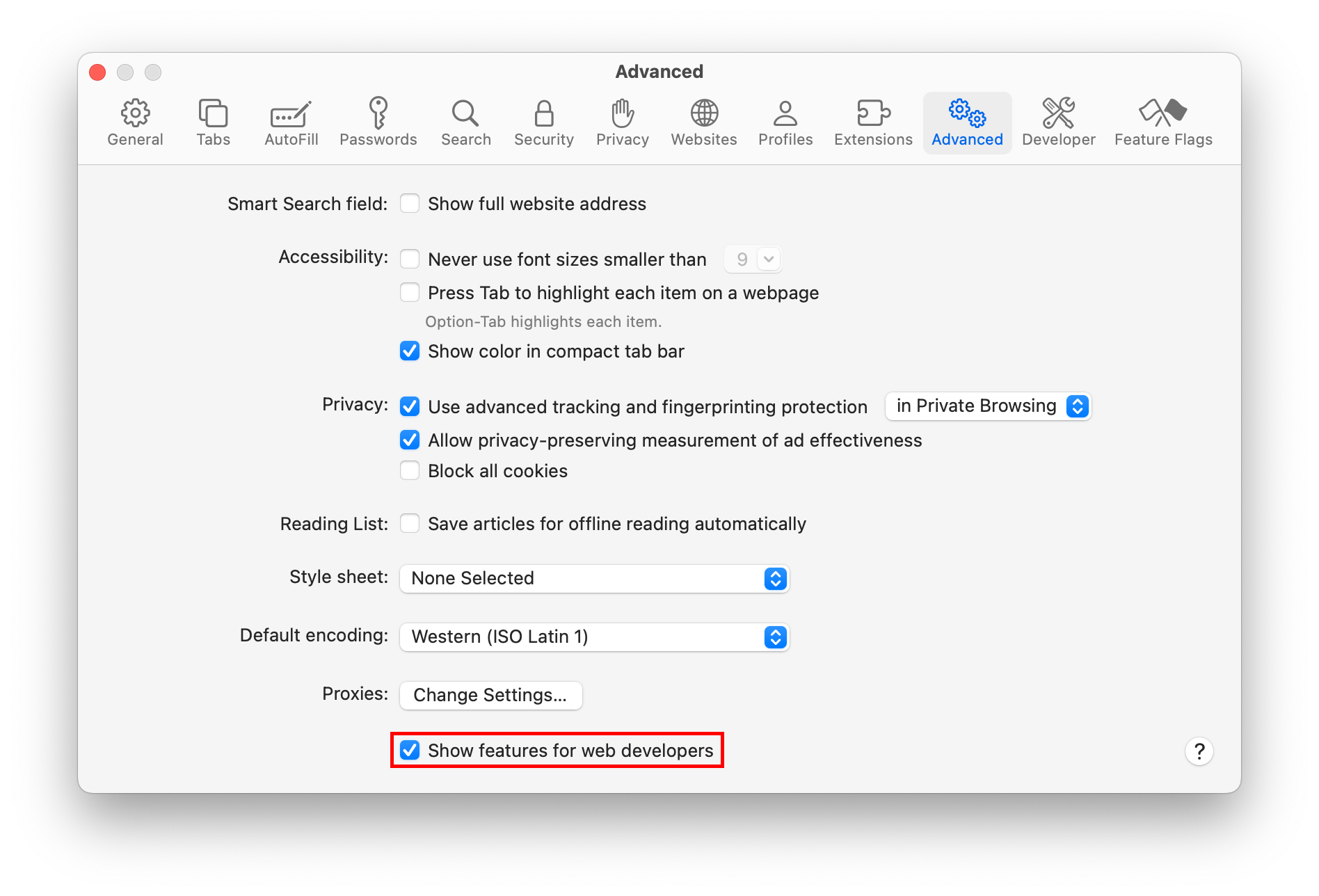 在 Safari(或 Safari 技术预览版)中启用 Web Inspector: